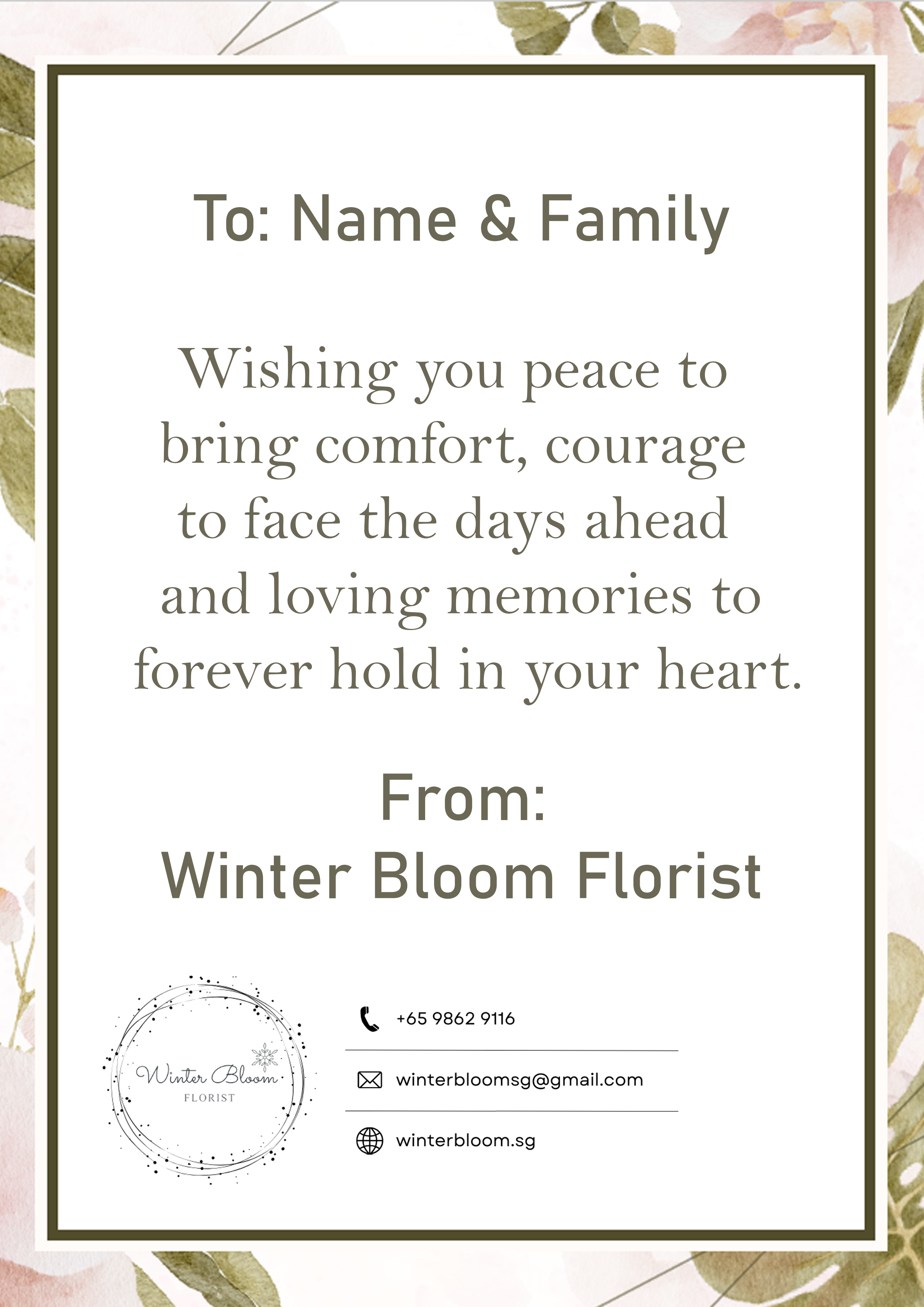 Gracefully designed to convey peace and heartfelt sympathy, “Harmony” embodies serenity amidst sorrow.