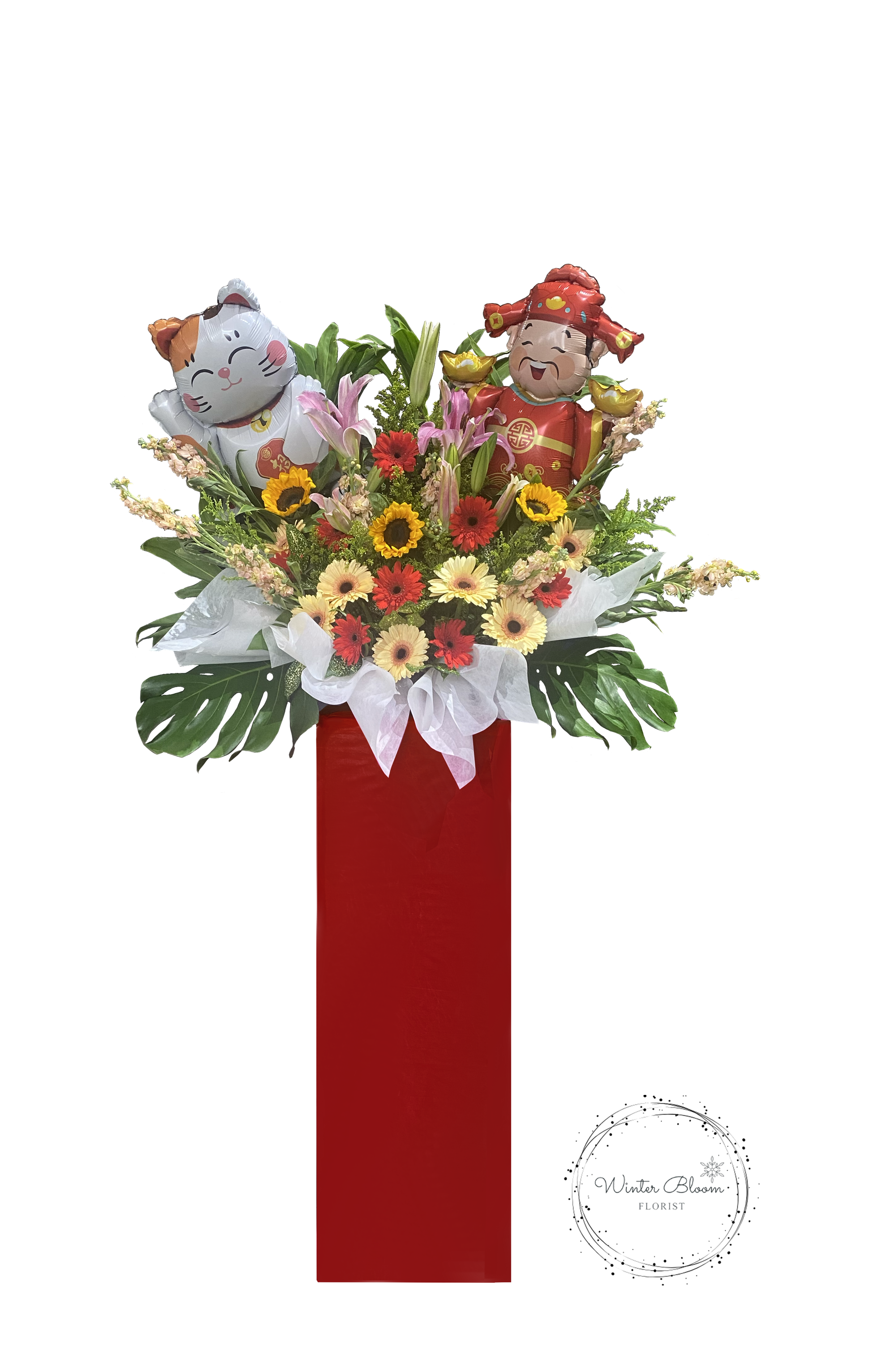 Gerbera. Sunflower. Lily. Balloon Decors. Monstera. Fillers.